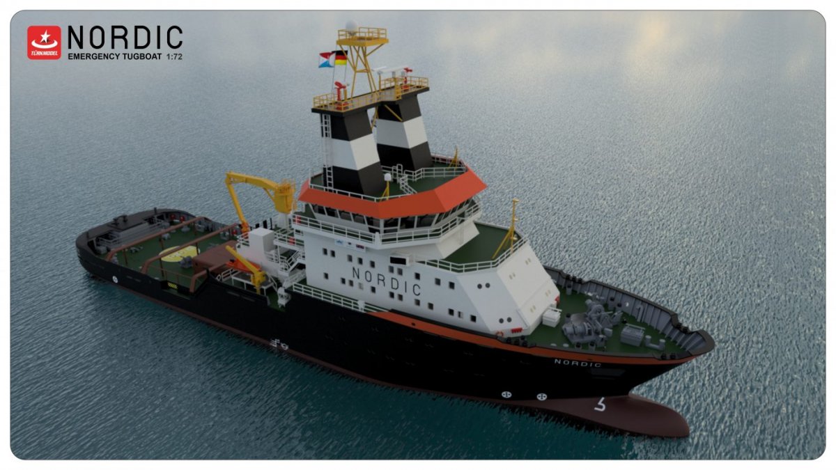 NORDIC EMERGENCY TUG BOAT INKL. LEDBELYSNING 108 cm. LÅNG.