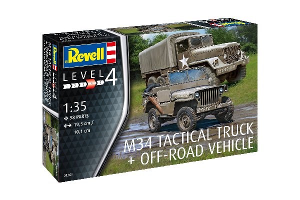 1950 M34 TRUCK + JEEP. 98 DELAR. L=195/101mm. NIVÅ 4 AV 5. SKALA